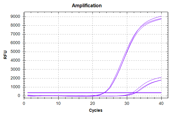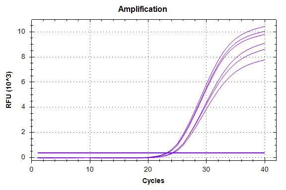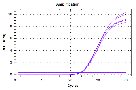 ПЦР в реальном времени проводили в термоциклере BIO-RAD CFX по следующему протоколу: при 95°C — 3 мин; при 96°C — 30 сек; 5 «слепых» циклов: 96°C — 10 сек, 64°C (с понижением на 0.4°C в каждом последующем цикле) — 15 сек, 72°C — 10 сек, 75°C — 5 сек; 40 циклов: 96°C — 10 сек, 62°C — 15 сек (с детекцией флуоресцентного сигнала в канале FAM), 72°C — 10 сек, 75°C — 5 сек;